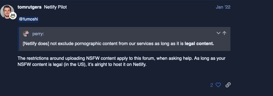 A note about Netlify and NSFW